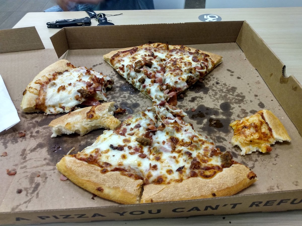 Pizza was great. One bite everyone knows the rules, I give it a 7.3